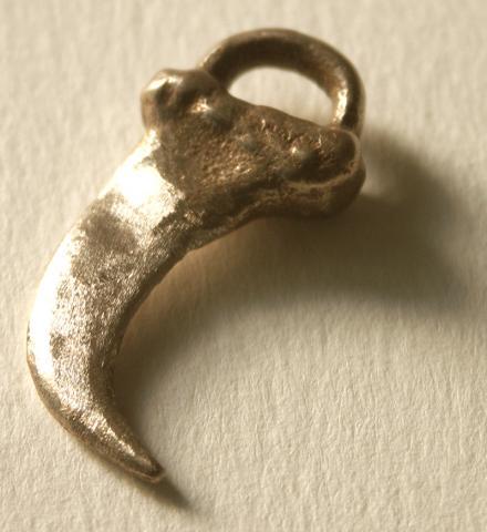 I designed this pendant to look like an animal claw (or large tooth?). This particular stainless steel pendant, as seen in photo below, has had the claw part smoothed out with a dremel to give it a different texture to the top part. It measures 3cm in length and costs $US11.80 in s/steel. Pendant comes with a black leather necklace with bayonet lock. Link to this item in my Shapeways store.