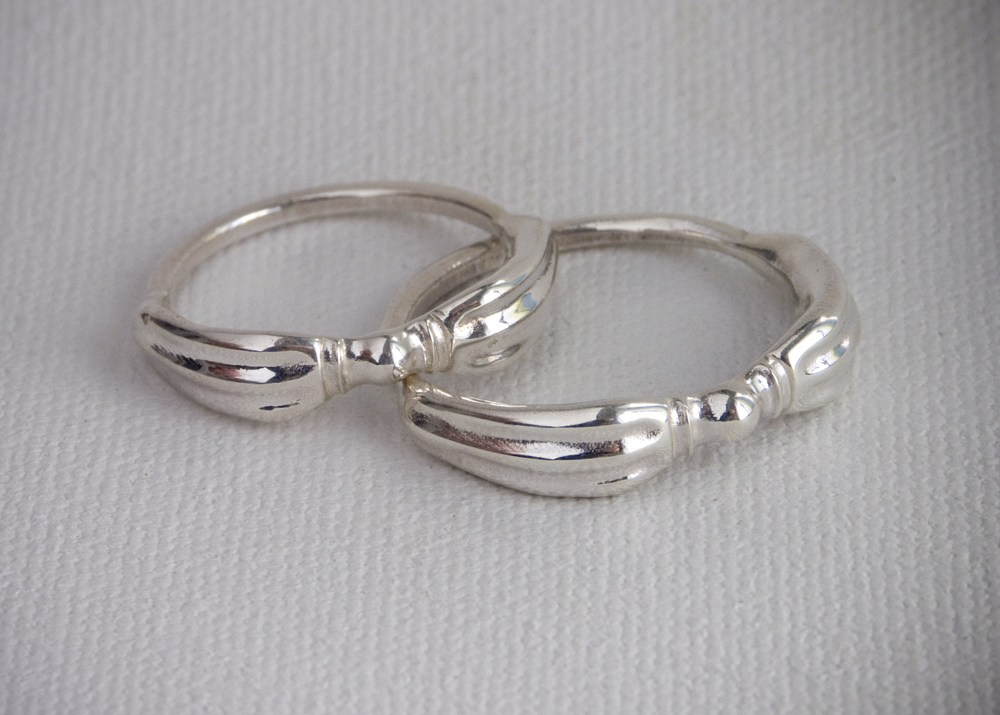 A customer requested the rings below for himself and his wife. He wanted them based loosely on the ritual object derived from a Sanskrit word. If you’re so inclined you can find more information on Wikipedia. The rings are made out of sterling silver. Wax models 3D Printed at Shapeways and then cast in traditional lost wax method.