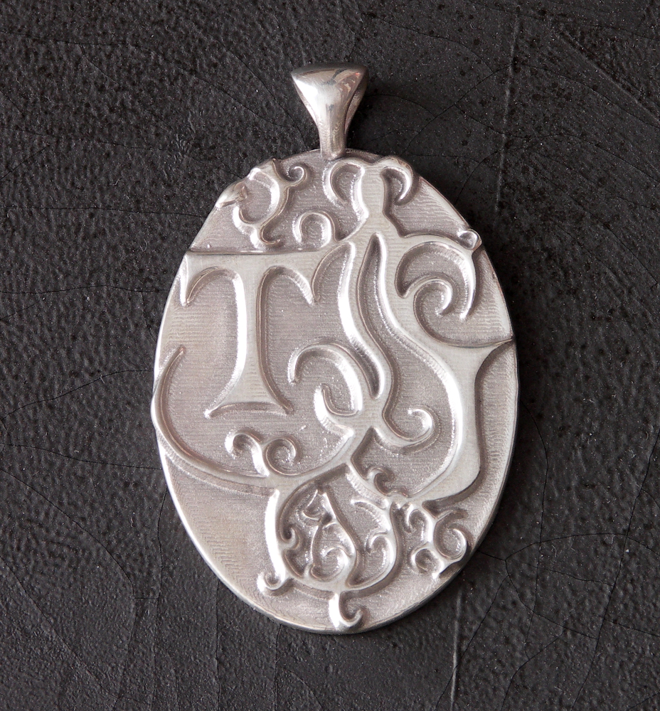 Why “T Cat Pendant”? Well, sometimes I get clients who show me drawings of what they want without explaining the meaning behind it. Such was the case with this one. Client drew me a viney, tree-limb, sort of thing with the letter T and a cat near the bottom. What else could I call it?