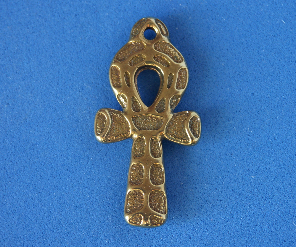 I created this 1.25 inch Egyptian Ankh with a uniquely textured surface in Brass. It has a nice gold-like quality but without the expense!
