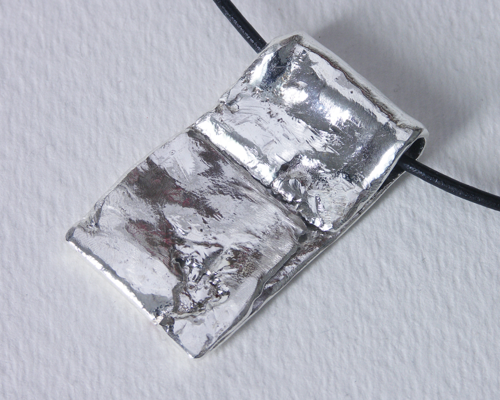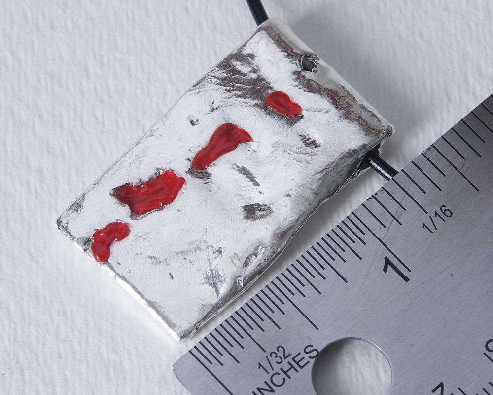 It measures an inch and a half long and folds over itself to form the hole for the leather or metal chain. This item is for sale in my Etsy shop for US$100.