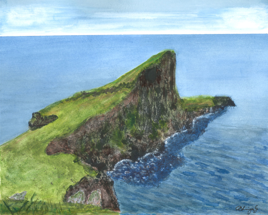 The image is that of a piece of land jutting into the sea on the coast of Scotland. It is not a faithful representation and so I have not named the location.