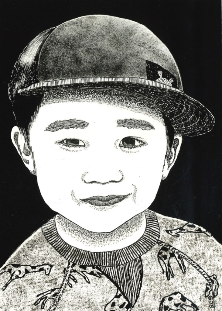 I recently completed this pen and ink portrait for a family friend. 5″x7″ on Claybord.