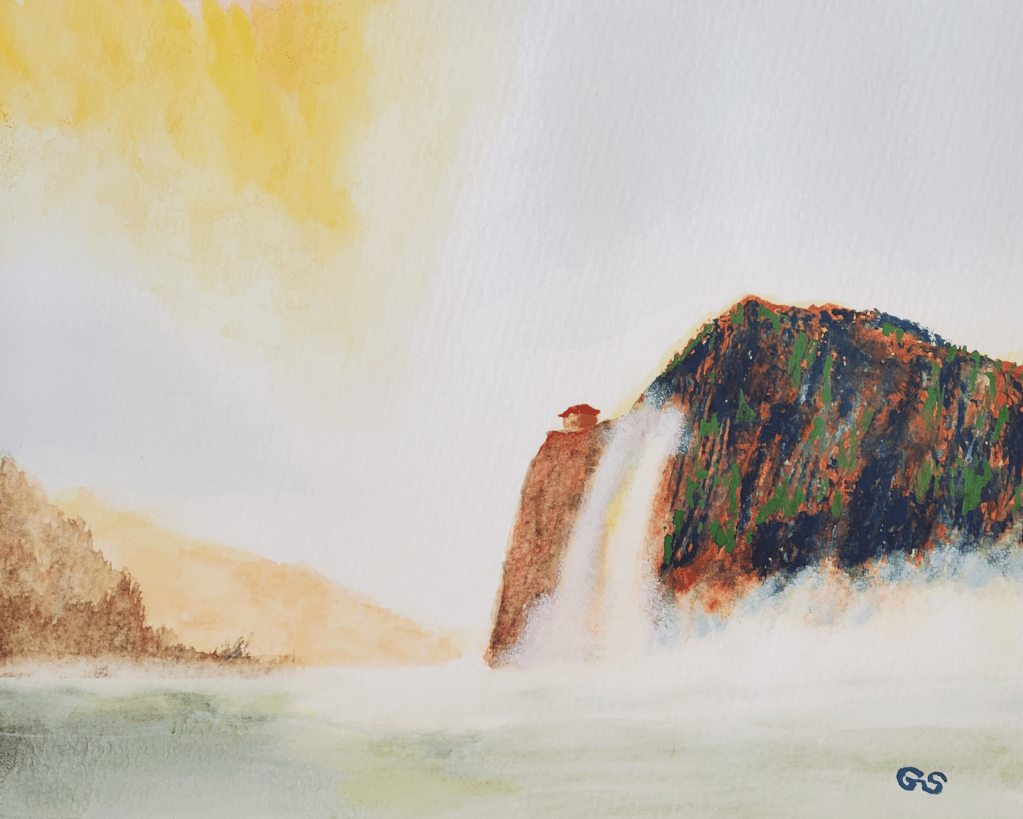 I completed this painting October 2021, in watercolour with a touch of gouache. Titled “Solitude”, it measures 8″x10″ on a 10″x14″ sheet of Winsor & Newton Cotman w/c paper. Available in my Etsy store, link in bio. Some of us might have had just about all the solitude we can handle during the pandemic, but I liked the thought of a lone house sitting atop a mountain vista….