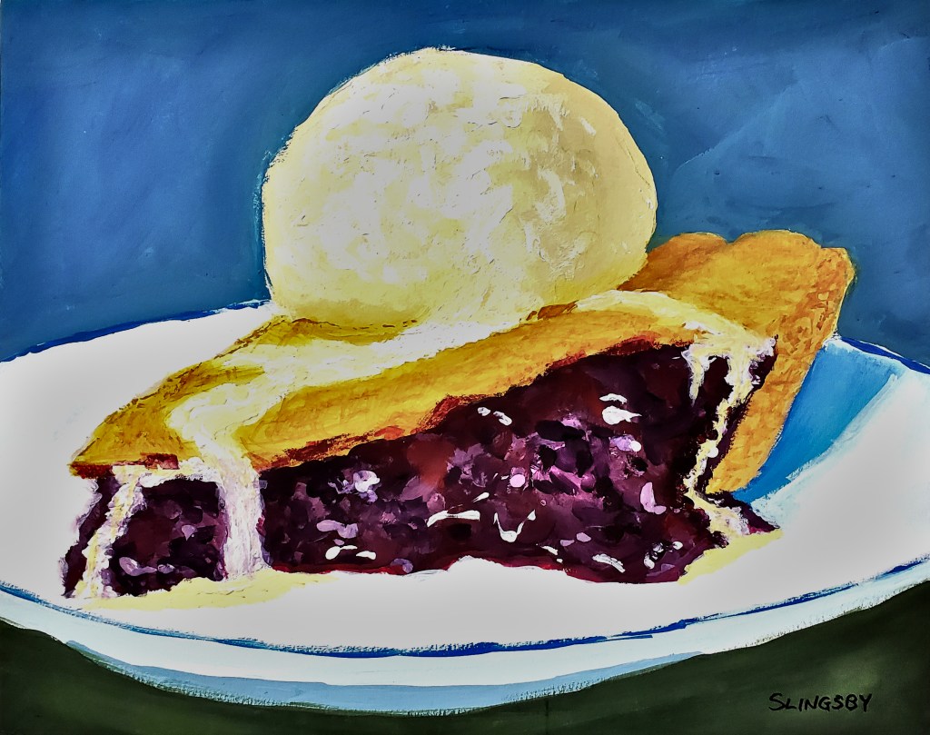 Latest gouache painting, “Blueberry Pie and Ice Cream”, for the few weeks old #foodpaintchallenge on Instagram hosted by @alaiganuza and @dennispfeil.art. Thanks to @noahverrier for the reference photo.