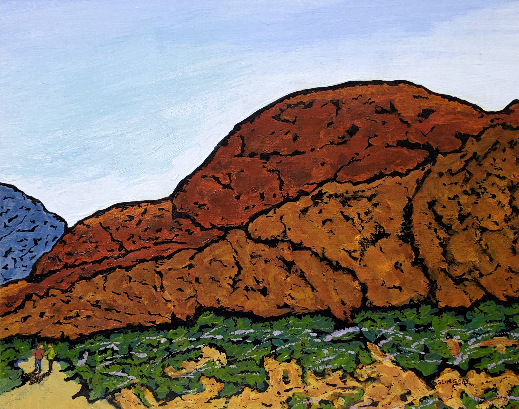 The best part of visiting Las Vegas was getting OUT of Las Vegas to go visit Red Rock Canyon! Well worth the short trip. Wonderful vistas. Being born and bred in the UK my first impression was of seeing land just as the early North American settlers must have seen it. This is my latest painting, 8″x10″ acrylic, gouache and ink on sealed hardboard. Varnished and ready to be placed into standard frame with no glass needed. Available in my Etsy shop.