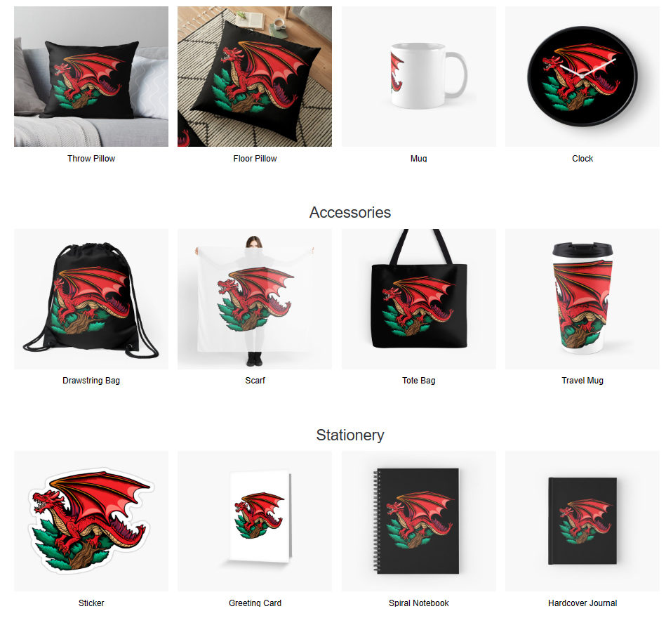 Latest design available on many products such as t-shirt, hoodies, mugs, stickers, etc., is a graphic representation of the red dragon featured on the Welsh flag. The red dragon of Wales personifies the fearlessness of the Welsh nation. As an emblem, the red dragon of Wales has been used since the reign of Cadwaladr, King of Gwynedd from around 655 AD.