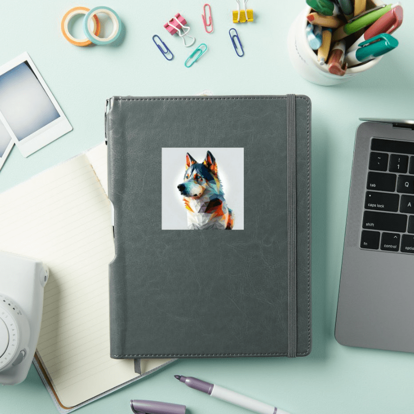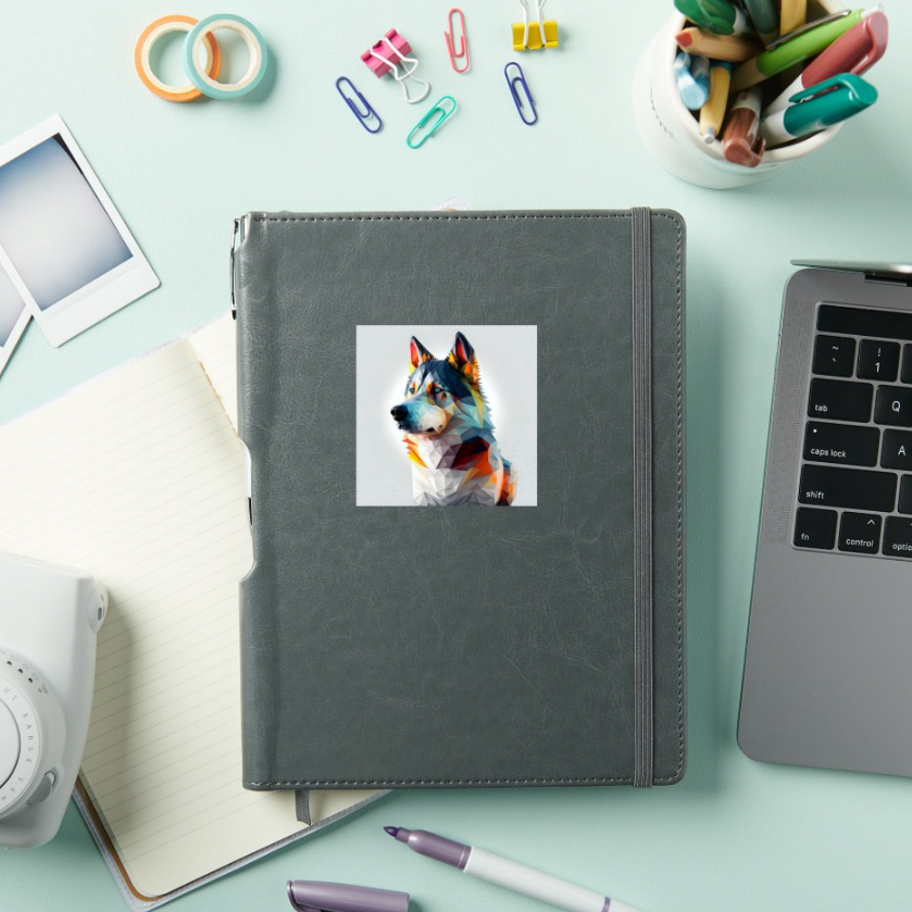 Another sticker I created recently of a Husky dog in a polygonal graphic style. Can be purchased from Zazzle where you could add your own dog’s name and then stick it on a notebook where you keep info on all things related to your dog (no need to purchase an expensive print-on-demand notebook!). I plan on adding more dog breeds so if you have one you’d like to see drop me a message.