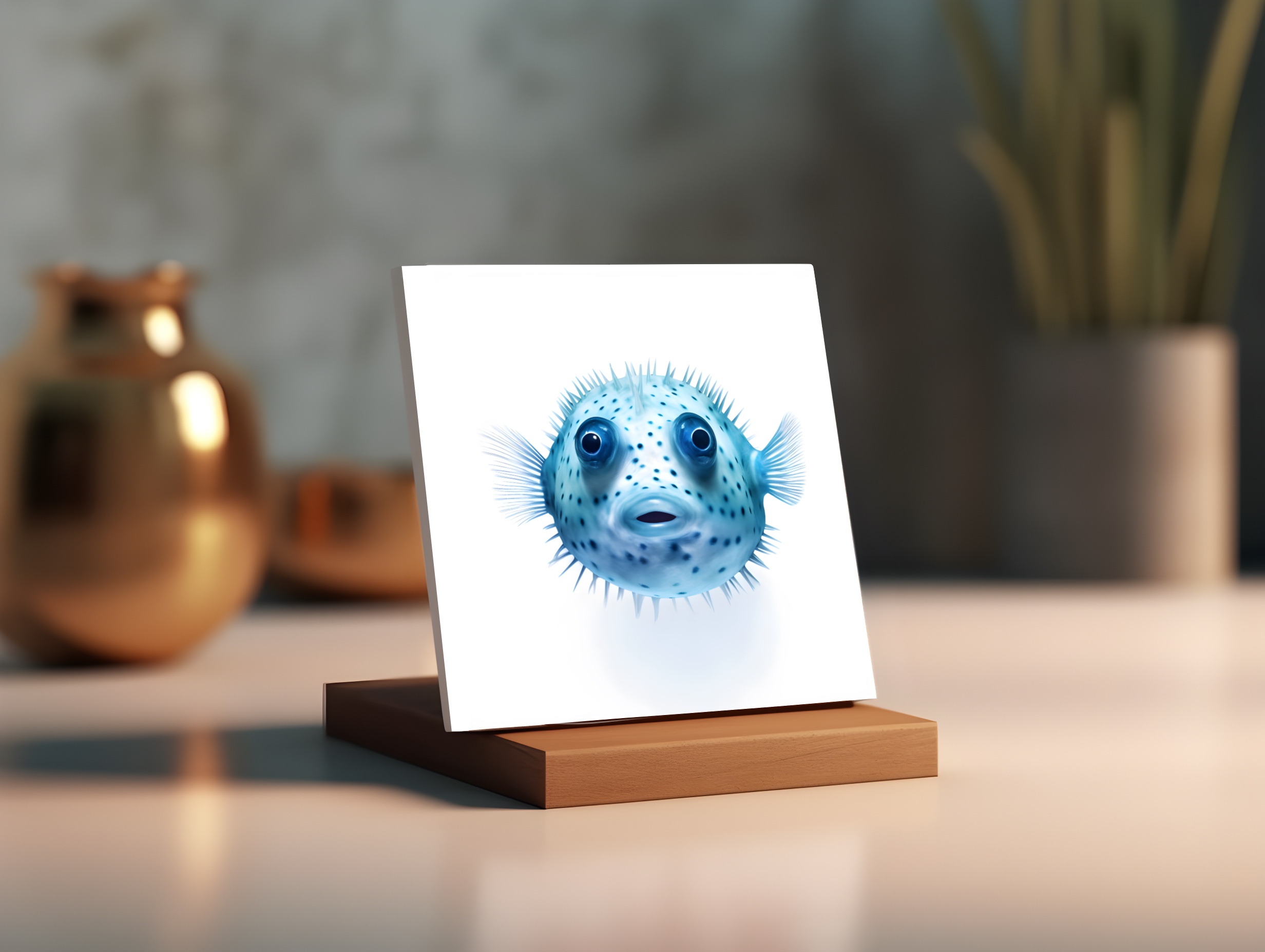 This is a faux cyanotype (early forerunner to photography) image of a Pufferfish that I created and made available as a ceramic tile and a print. For anyone that doesn’t know, on Zazzle if you as a buyer see a design you like on one product you can always see what that design will look like on another product and then buy it.