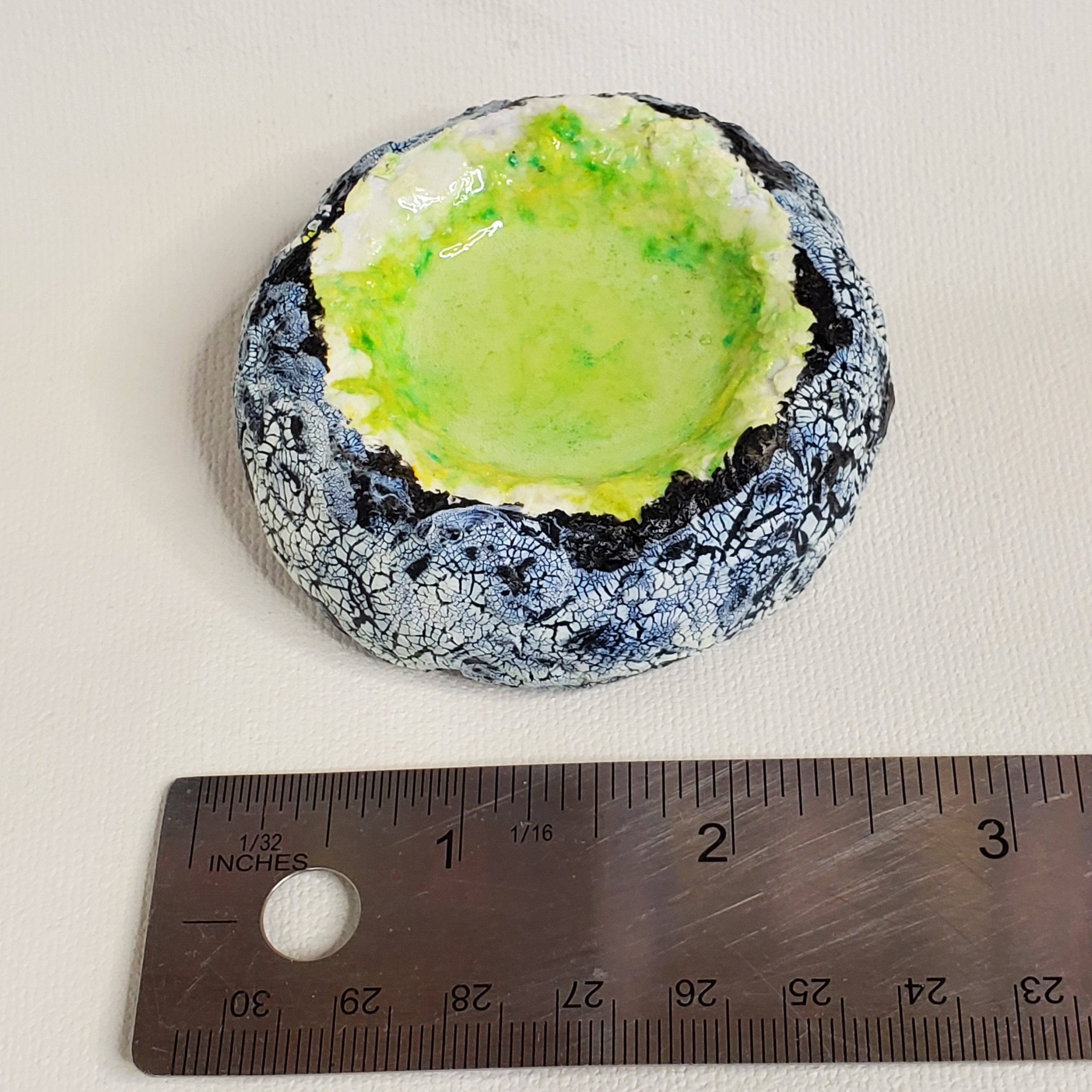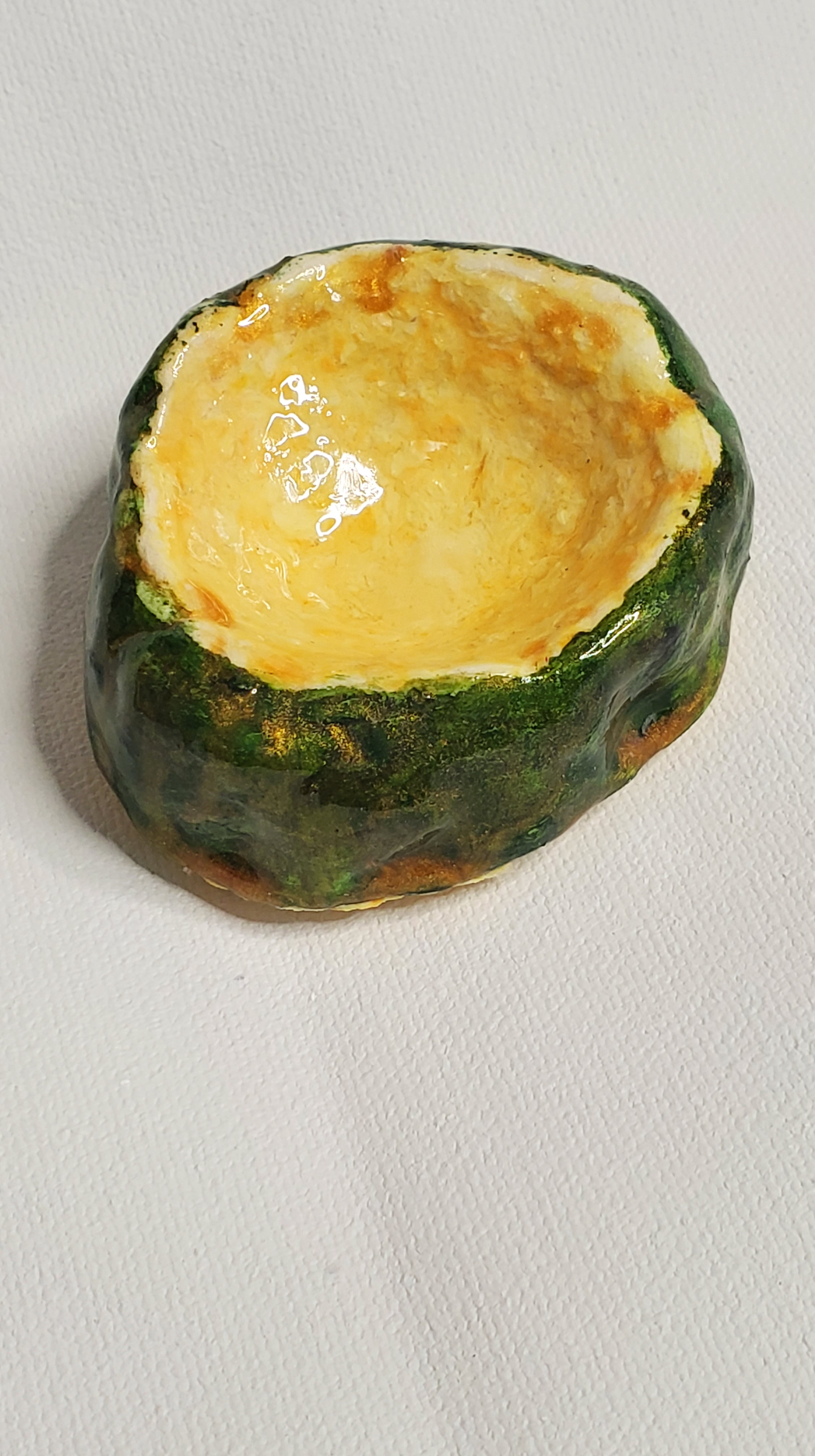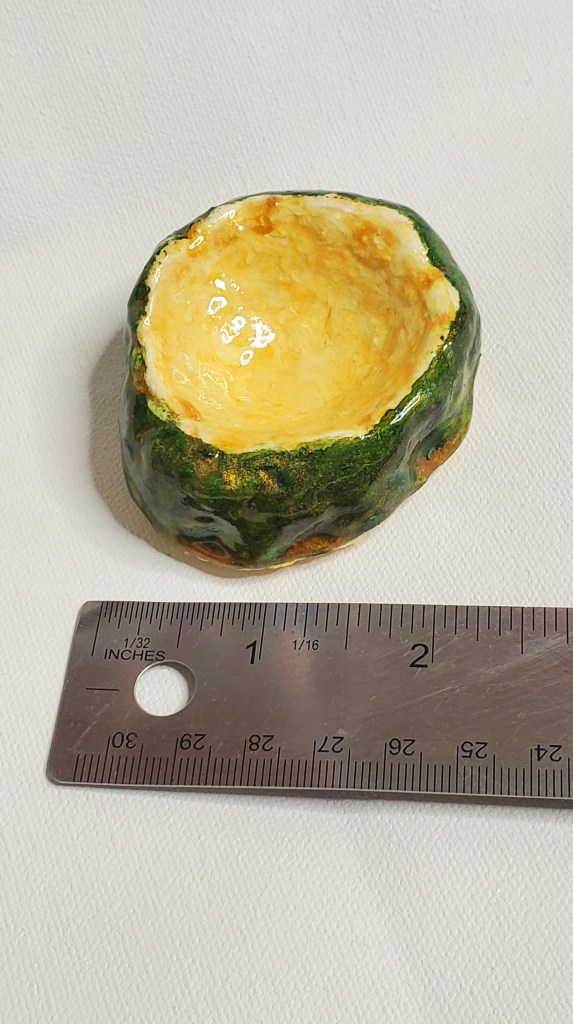 I have once again combined two of my essential oil diffusers since it is more economical to buy this way. As usual, my own papier-mache clay was used, painted and resin and/or gloss urethane coated. The exterior of one of them was given an aged crackle finish.