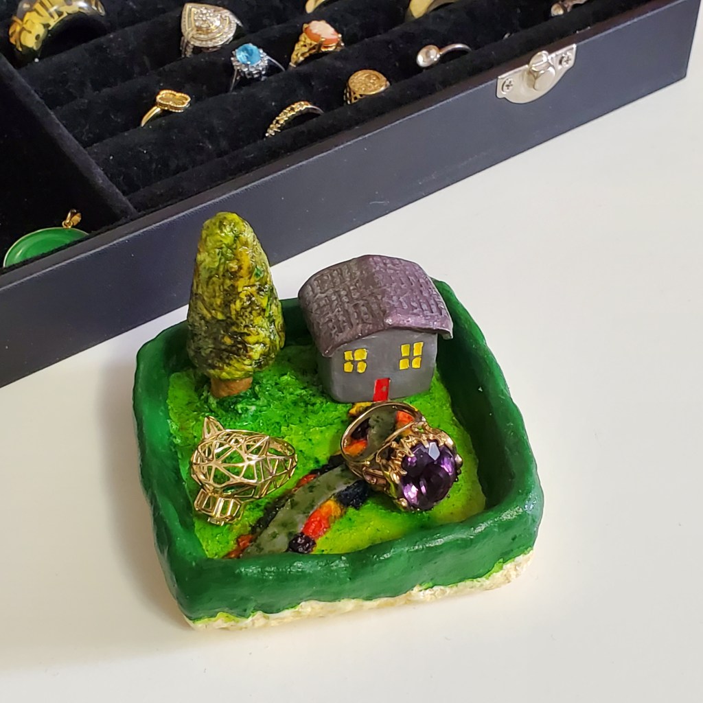 This is the latest addition to my jewellery or trinket dishes, although there may not be many more to come since I intend to focus more time on my one-of-a-kind small sculptures and art toys.