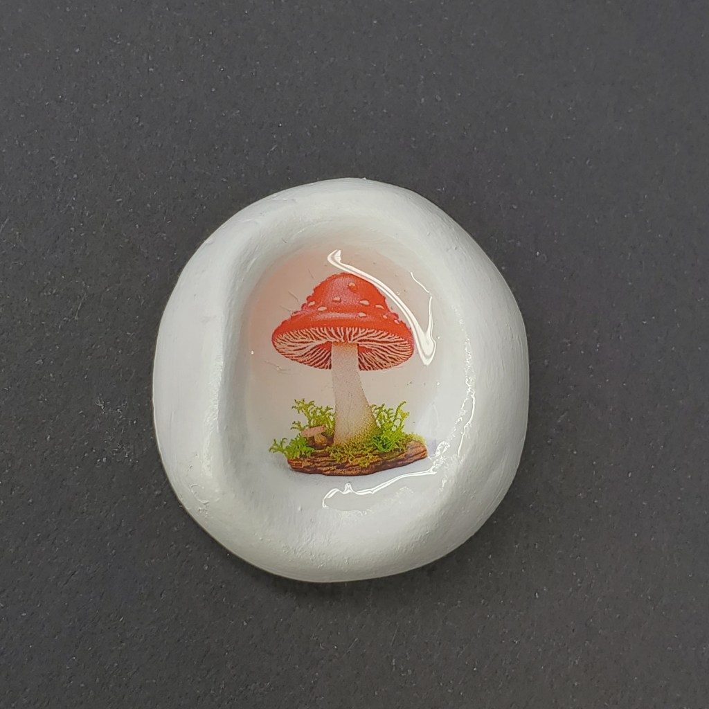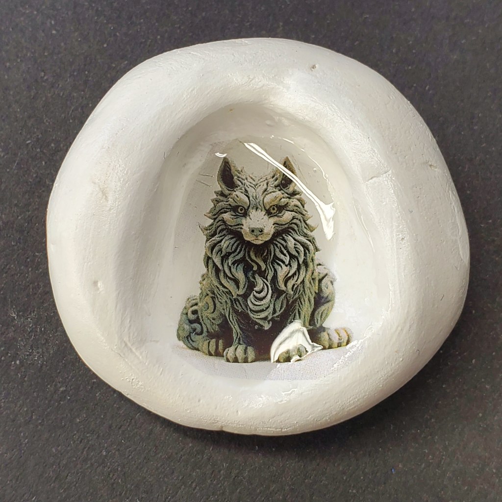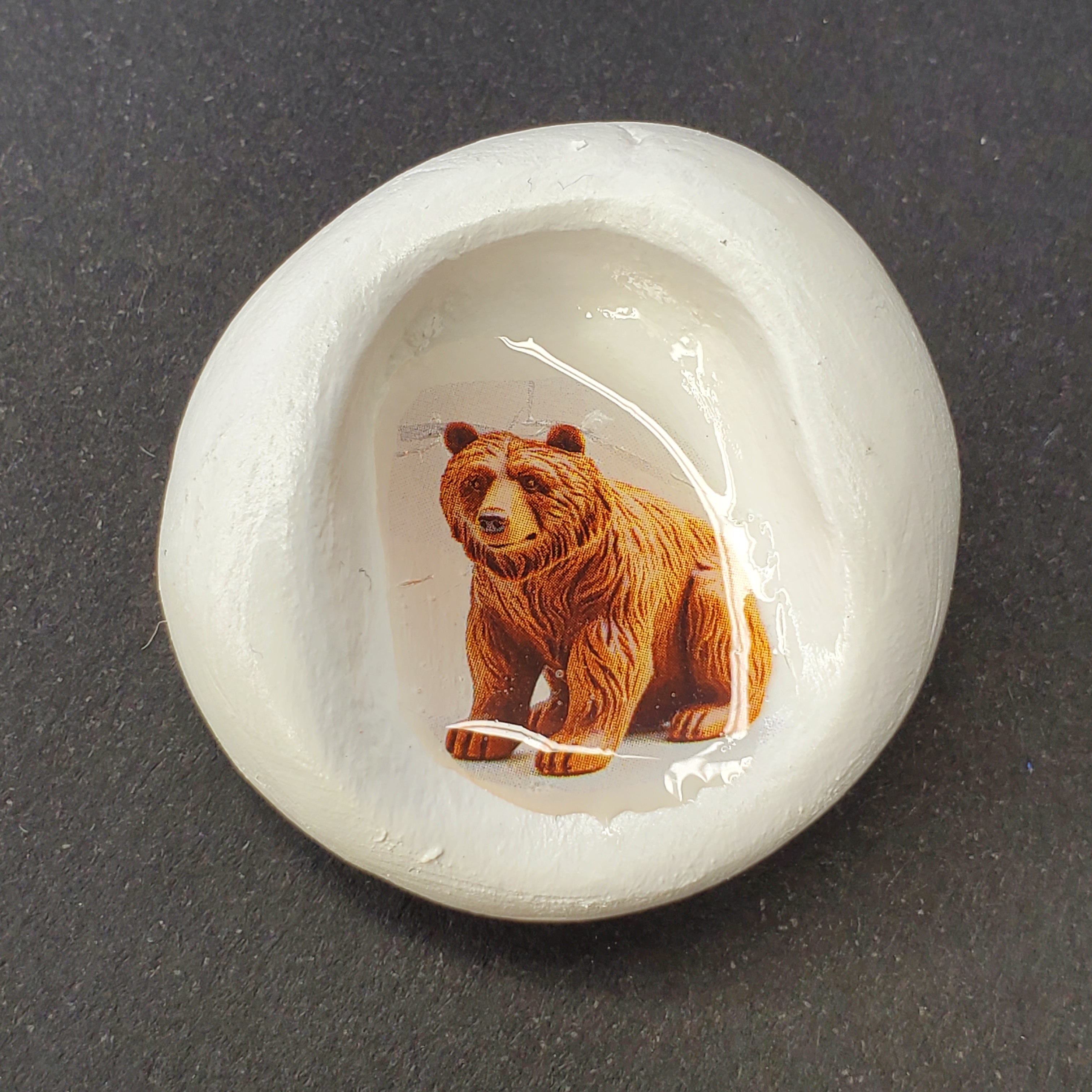 I created these worry stones recently that feature images of a bear, wolf, dragon and mushroom. Air-dry clay and with my own images inset as a decal and coated with thick resin to protect it. The outer surface is coated with urethane. I’m selling all four together since shipping cost for just one might make them too expensive. Keep one or two for yourself and gift the others! Can also be used as individual ring holders.